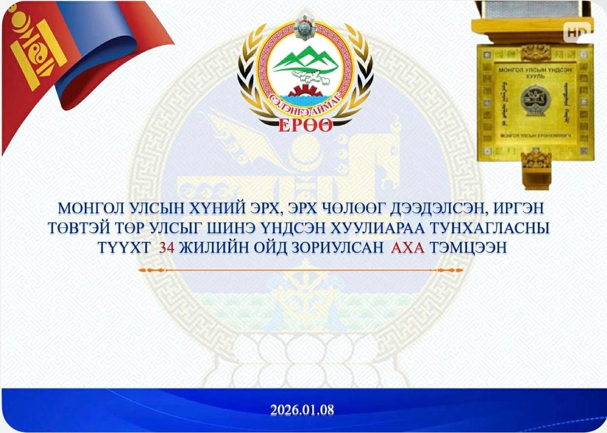 ШИНЭ ҮНДСЭН ХУУЛИА ТУНХАГЛАСНЫ ТҮҮХТ 34 ЖИЛИЙН ОЙД ЗОРИУЛСАН АХА ТЭМЦЭЭН